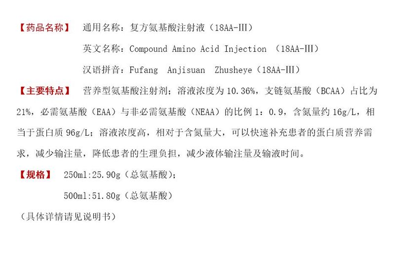 特納斯 | 復(fù)方氨基酸注射液(18AA-III)